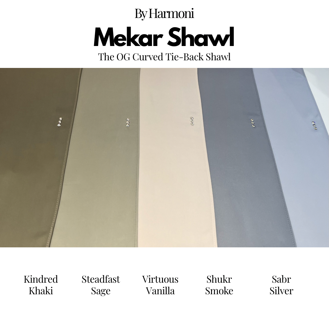 Mekar Shawl In Kindred Khaki, Steadfast Sage, Virtuous Vanilla, Shukr Smoke, Sabr Silver