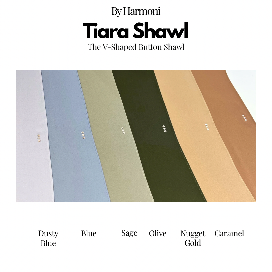 Tiara Shawl In Dusty Blue, Blue, Sage, Olive, Nugget Gold, Caramel
