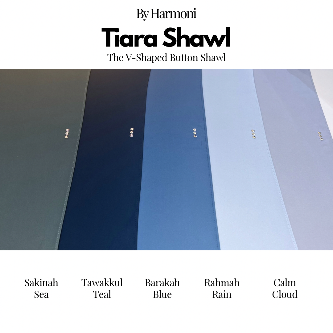Tiara Shawl In Sakinah Sea, Tawakkul Teal, Barakah Blue, Rahmah Rain, Calm Cloud